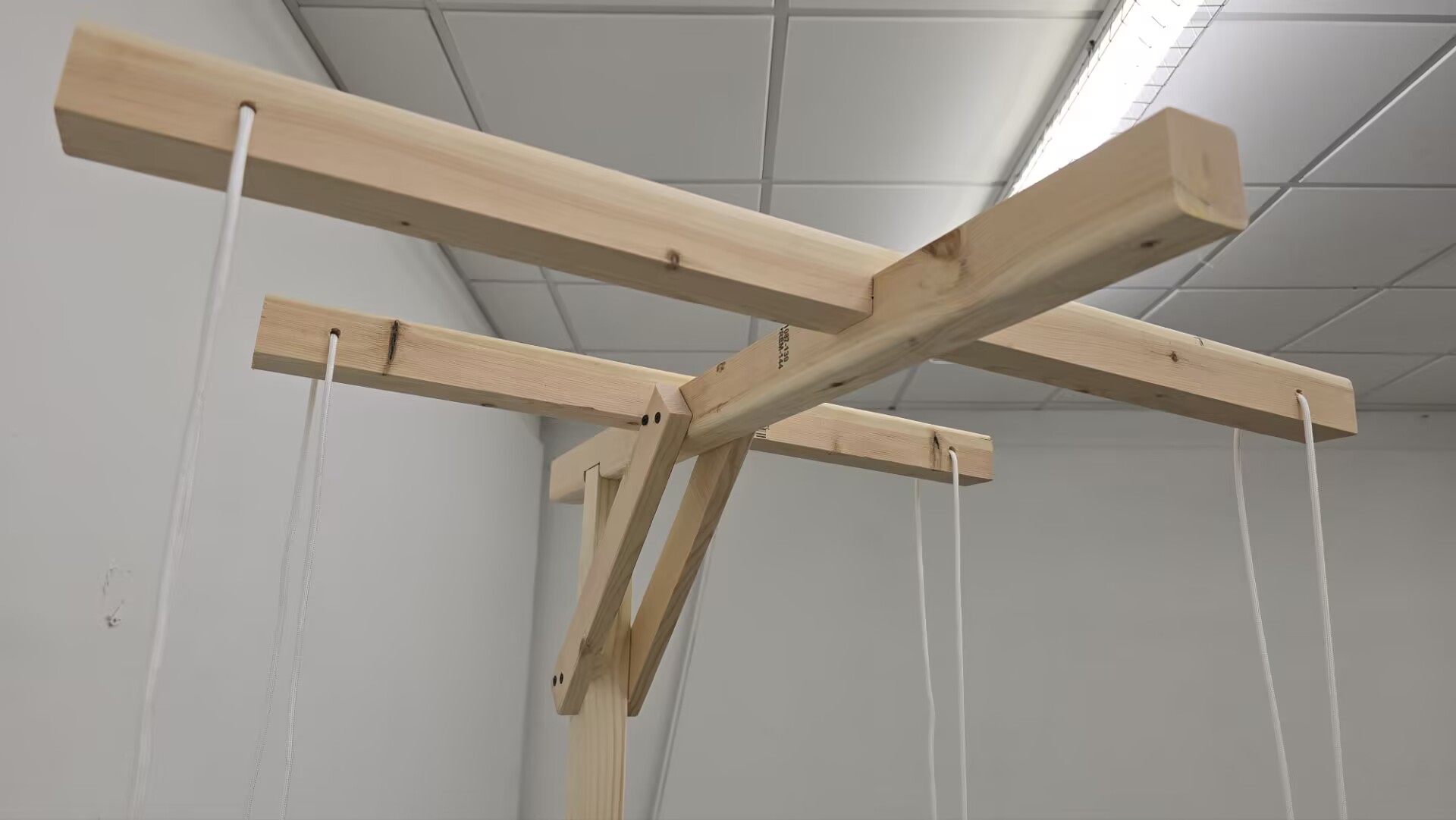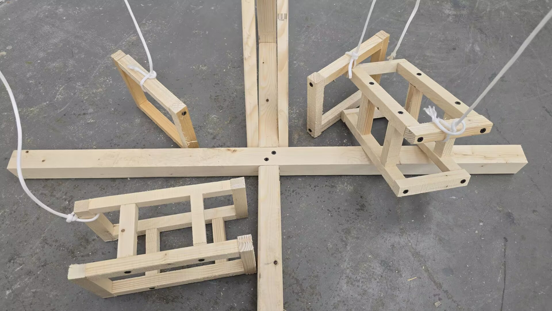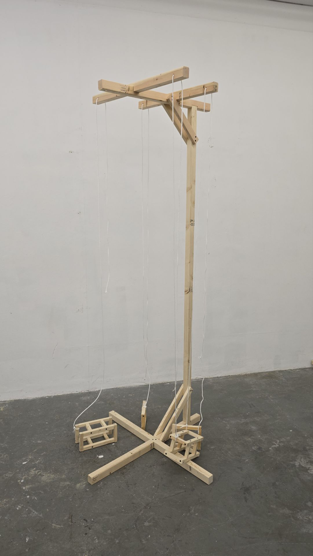 As the name suggests, I designed a wooden structure that allows the human body to be used as a marionette.